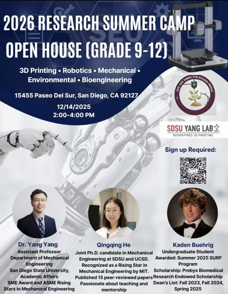 Calling all high school students passionate about STEM and discovery! Join the Open House for 2026 SDSU Yang Lab Research Summer Camp— your launchpad to real-world research and innovation.